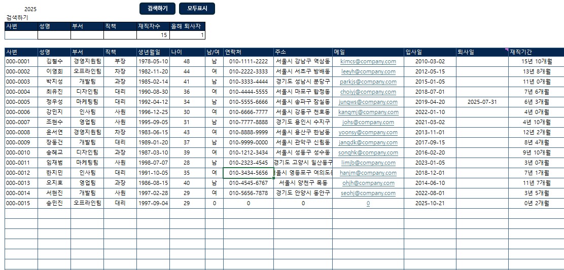 수식만 걸려 있는 엑셀 시트가 아닙니다.