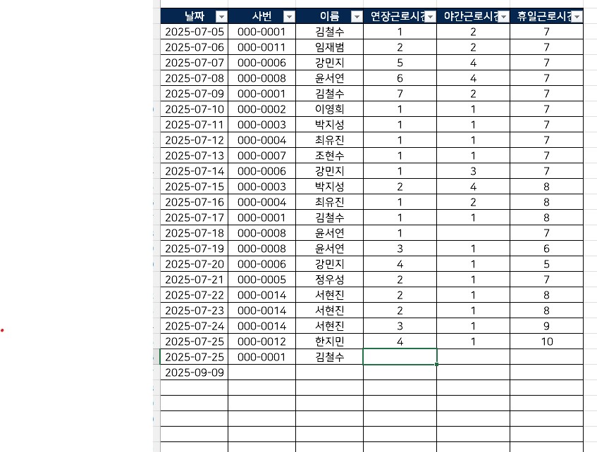 3) 근태 기반의 각종 수당 정밀 계산 연장근로, 야간근로, 휴일근로 시간만 입력하십시오.