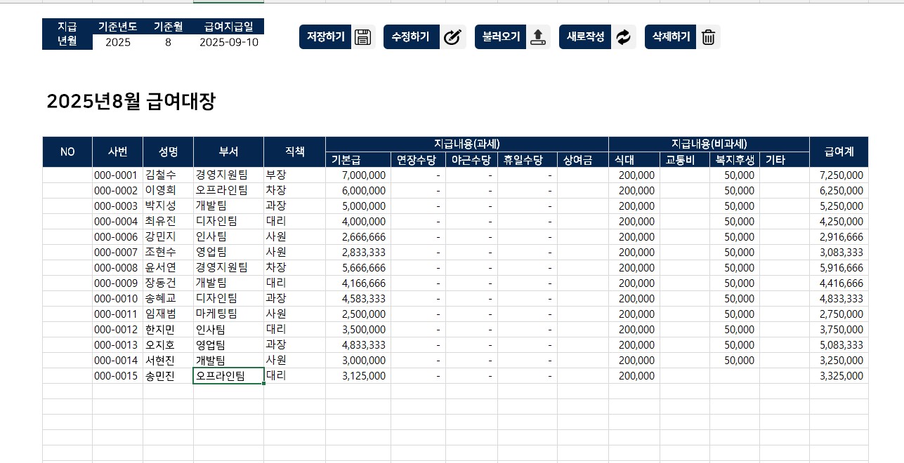 하이브리드형 급여 관리 시스템입니다. 2025년 최신 세법과 4대보험 요율이
