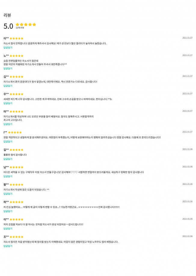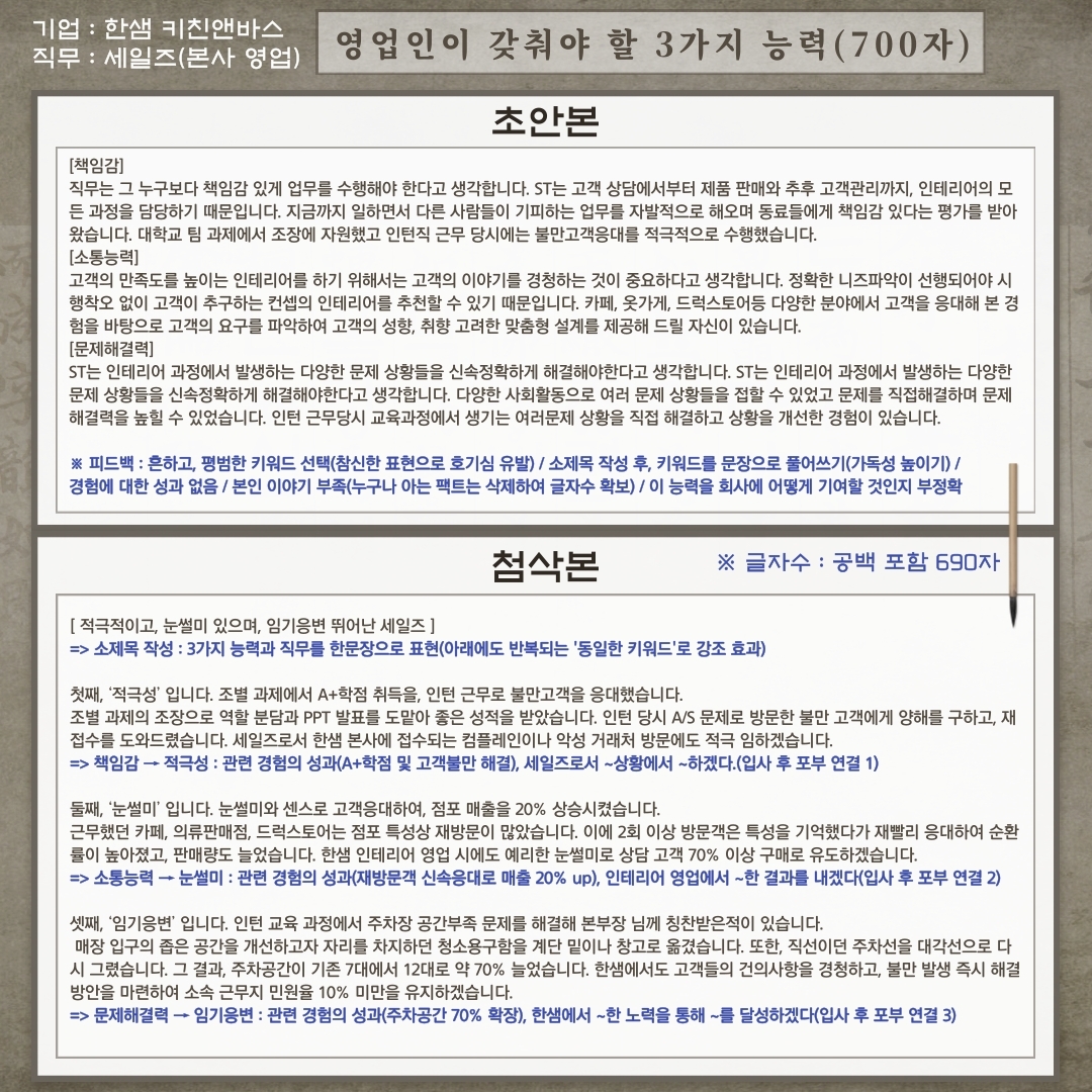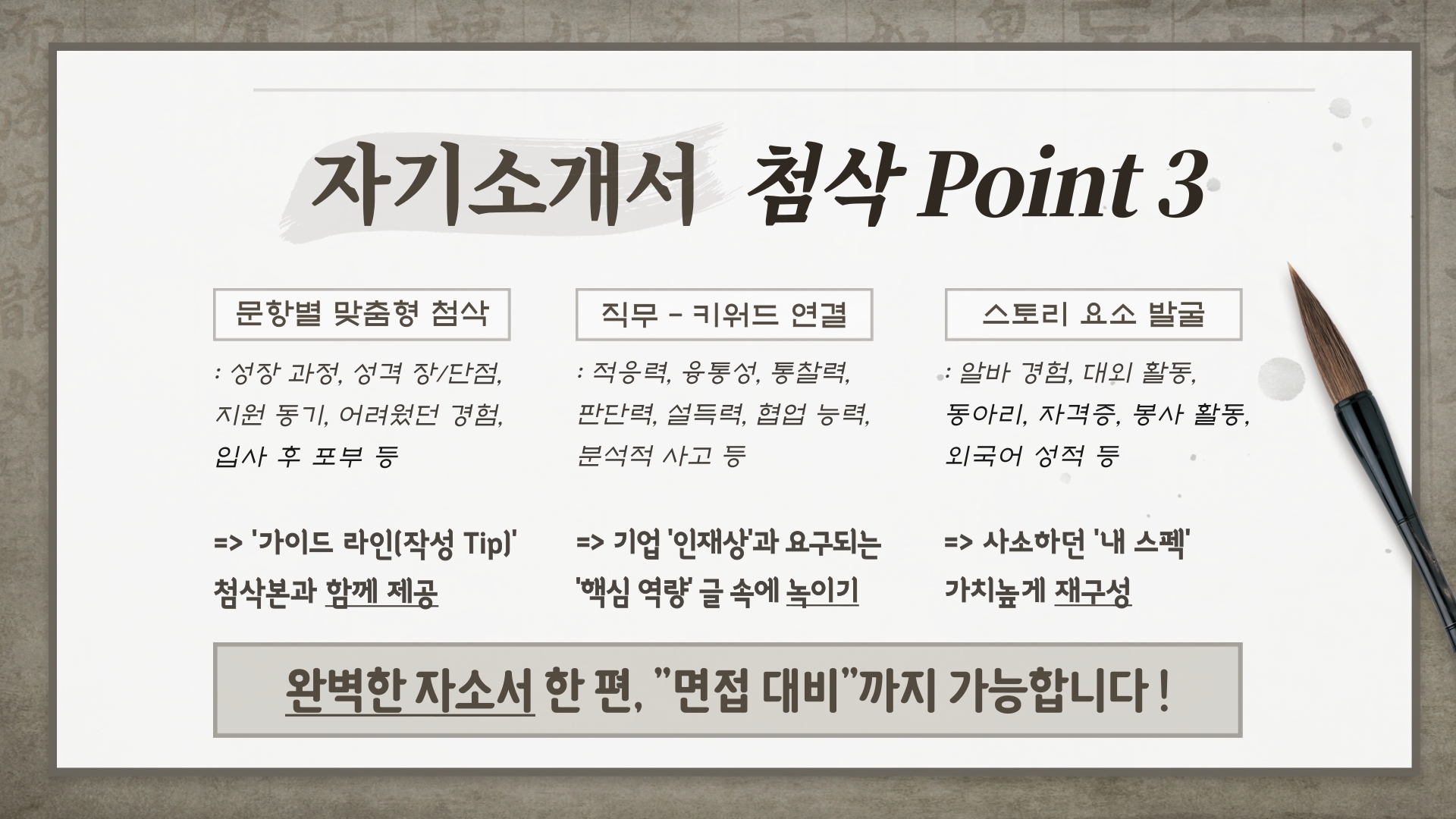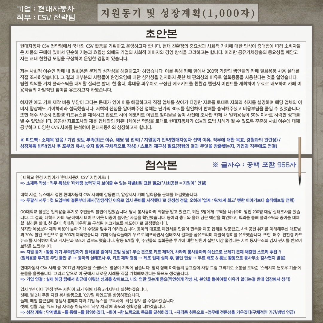 지원자 분석("초안본 피드백" 제공) + 무제한 첨삭("가이드 라인" 포함)