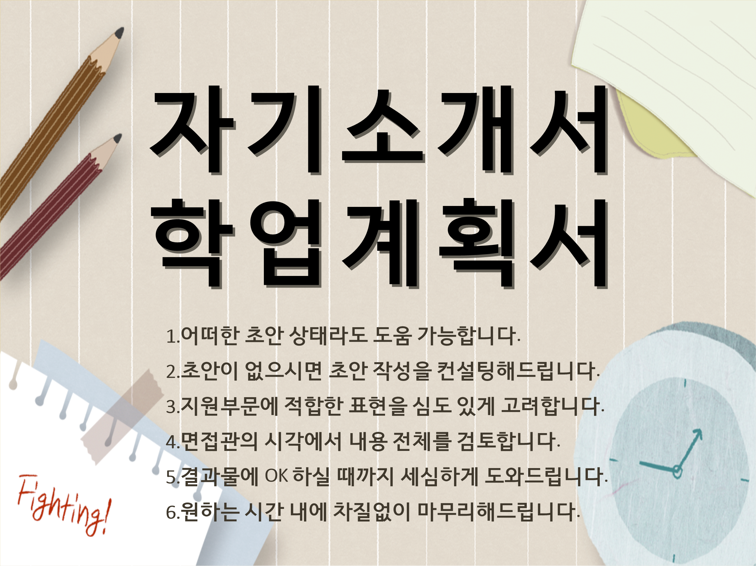 ** 학업계획서 : 1장 이내 -- 6만원 (난이도 상승 시 비용추가 있음)