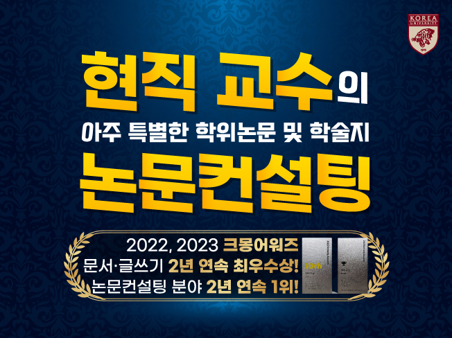 현직 교수인 저와 함께라면 반드시 『훌륭한 논문』으로 완성됩니다.