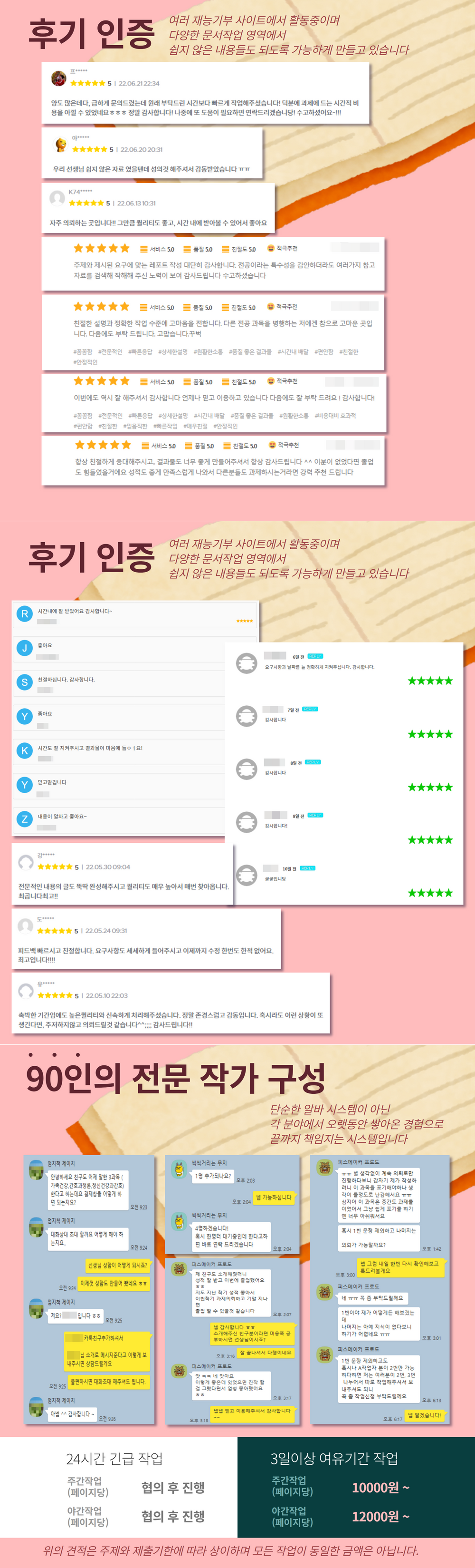- 각 분야의 문서 첨삭 가능하며