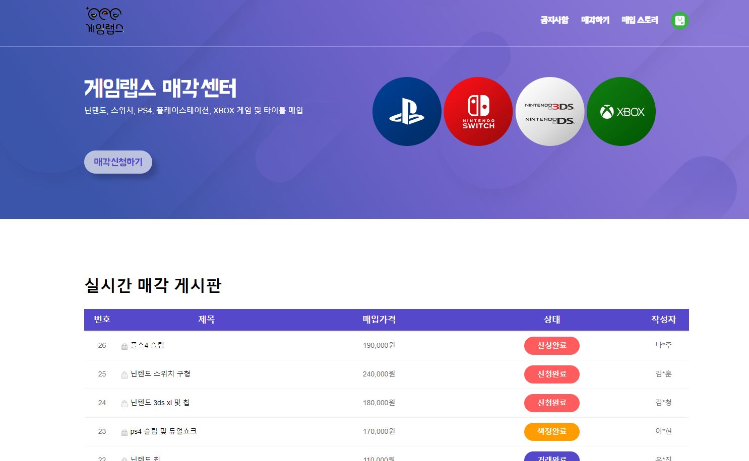 - http://gamelabs.kr/(중고거래 홈페이지)
