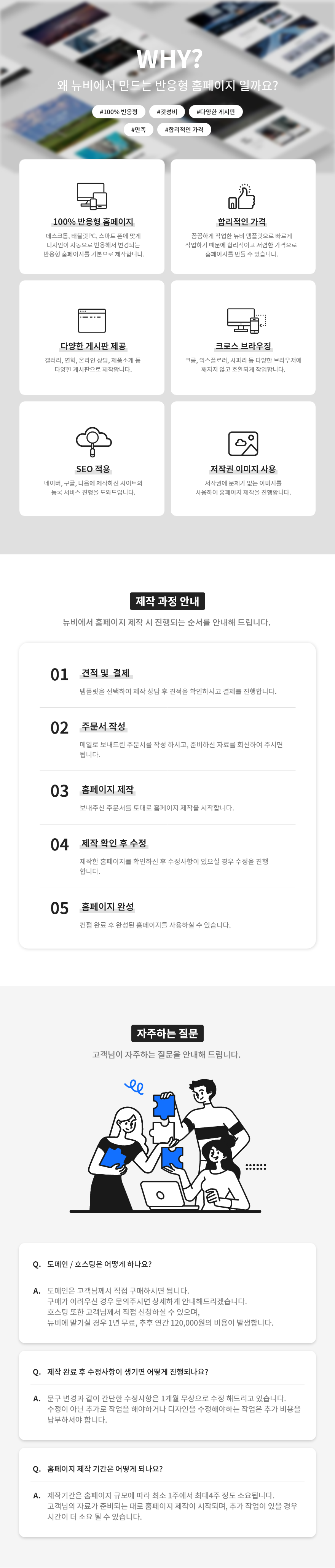 - 홈페이지 제작 후 컨펌 과정을 통해 2회 이내로 수정을 진행합니다.