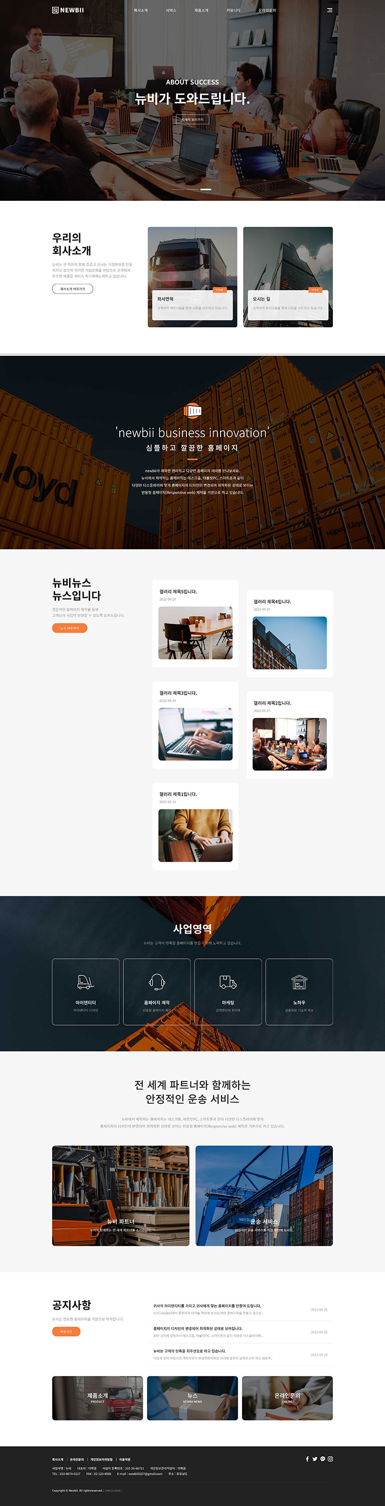 회사연혁, 갤러리, 뉴스, 제품소개, 유튜브 게시판 등 다양한 게시판을 제공해드립니다.