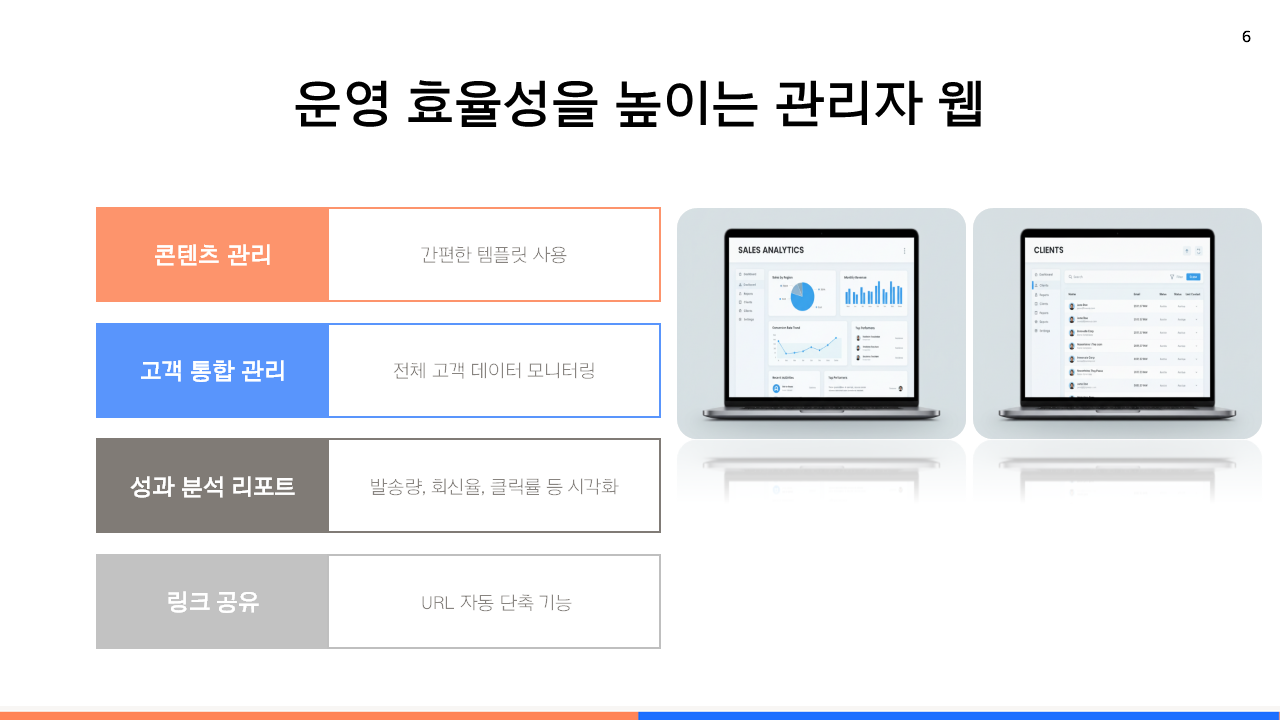 영업소 사무실에서 미리 만들어둔 전문적인 홍보 문구와 링크(템플릿)를 영업사원 모두가 공유할 수 있습니다. 이제 일일이 문자를 고민하거나 따로 콘텐츠를 만들 필요가 없습니다. 검증된 메시지를 고객에게 전달하고, 영업소의 브랜드 이미지를 통일하세요.