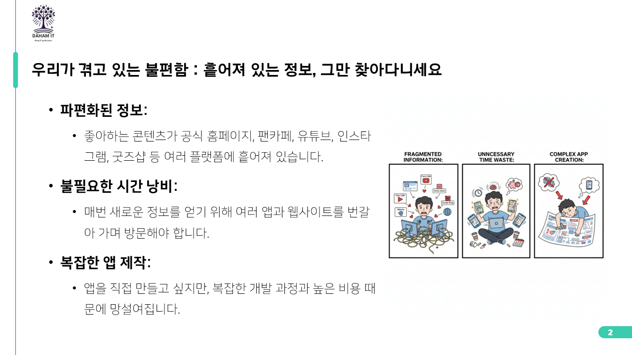 좋아하는 스포츠 팀, 아이돌 그룹, 취미 등 흩어져 있는 모든 정보를 하나의 앱으로 모아드립니다.
