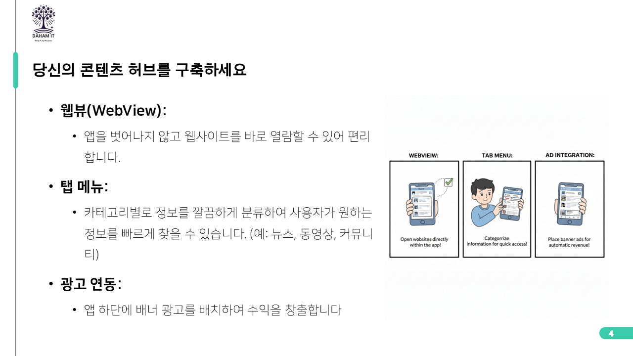 제작된 앱은 구글 애드몹(AdMob) 광고를 연동하여 사용자가 앱을 이용할 때마다 자동으로 수익이 발생합니다.