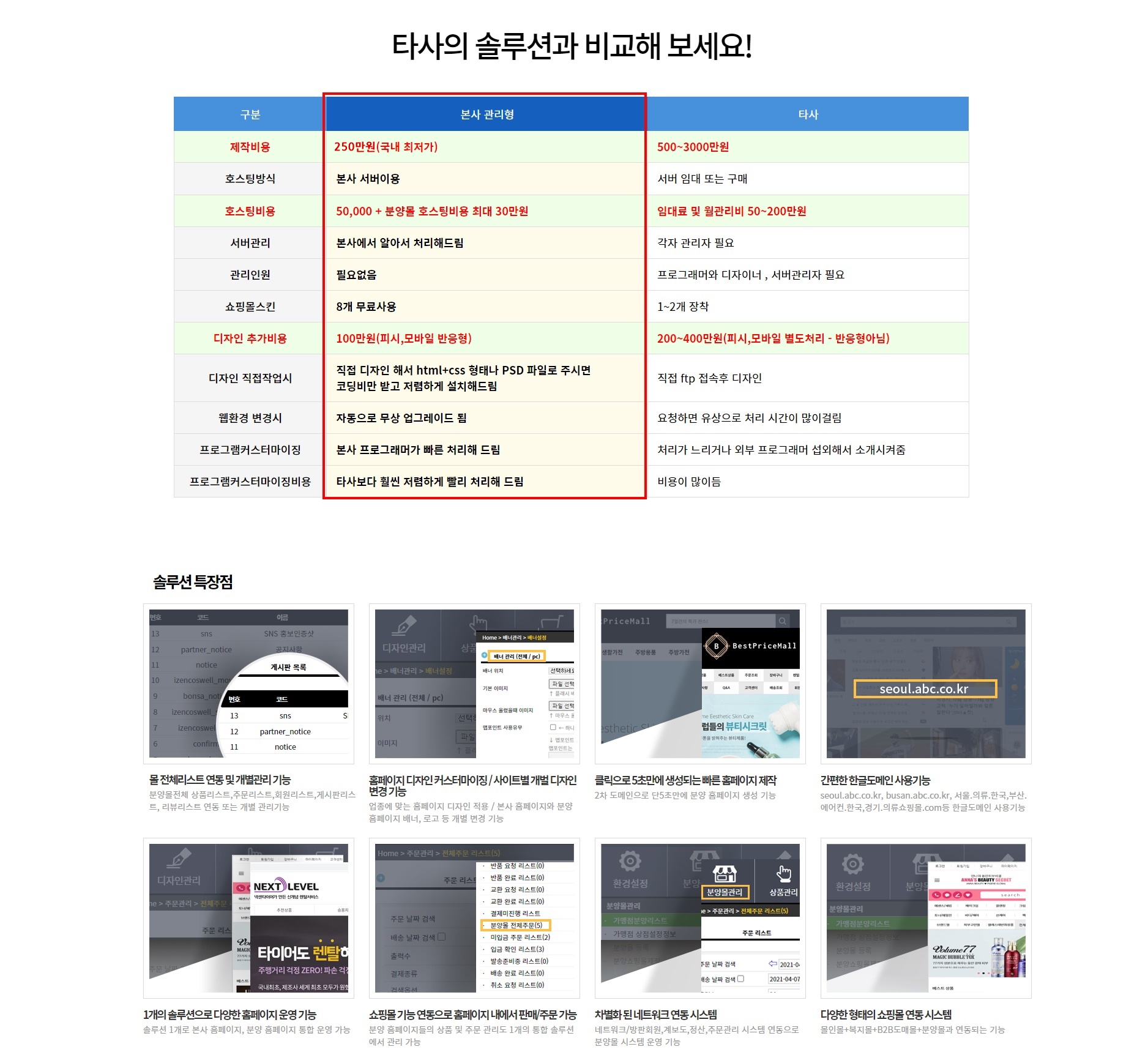 - 직접 서버를 운영하고 프로그래머를 고용하는 비용 없이 저렴하고 안정된 서비스를 받으실 수 있습니다.