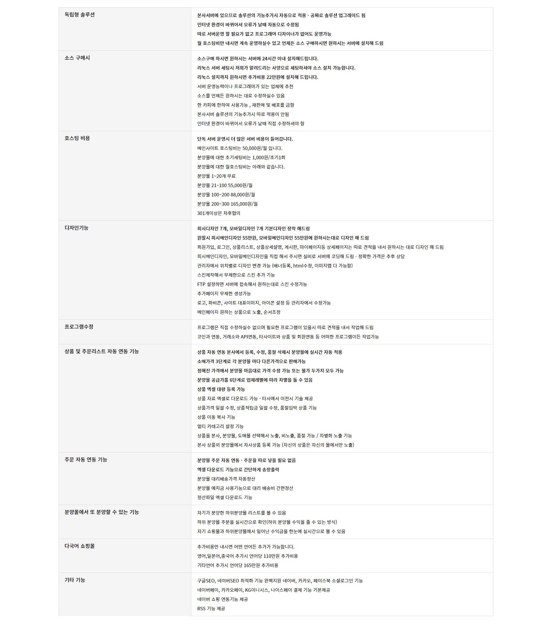 - 호스팅 비용만 내시면 저렴하게 사후 관리(호스팅,백업,업그레이드)를 받으실 수 있습니다.