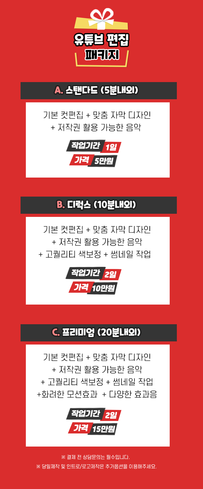 상담시 영상에 관한 정보 (레퍼런스, 영상의 분위기 등)를 미리 말씀해주시면 훨씬 수월합니다!