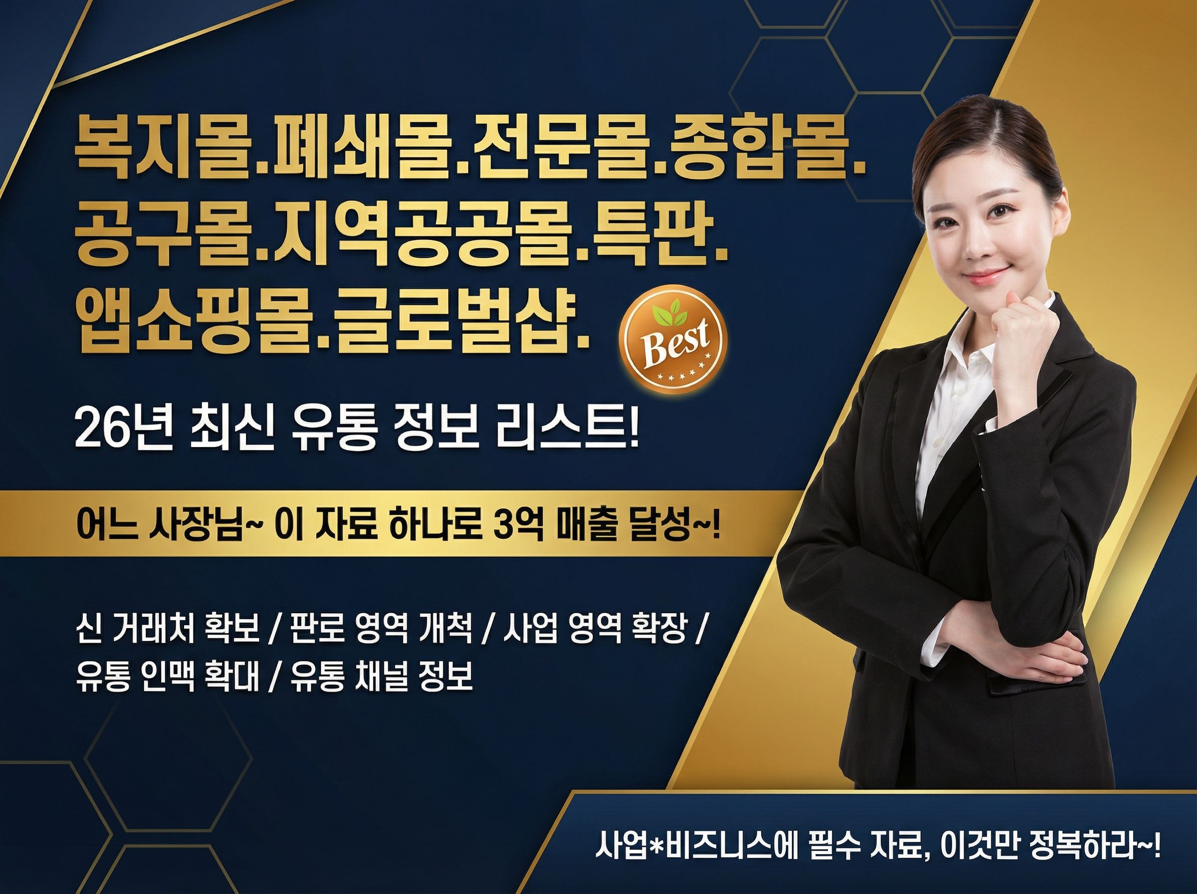 유통창업 / 도소매업 / 자영업 / 셀러 / 1인기업 / 스타트업 등.. 유통 사업을 준비중인분이시거나 현재 진행하고는 있지만은 다양한 유통 채널을 알고 싶고 더 크게 확장시키고 싶은 분들께 큰 도움이 될 수 있는 '2026년 최신 업그레이드 버전 3월판' 최신 정보와 최고급 자료로 더 한층 강력하게 준비해서 내놓게 되었습니다.
