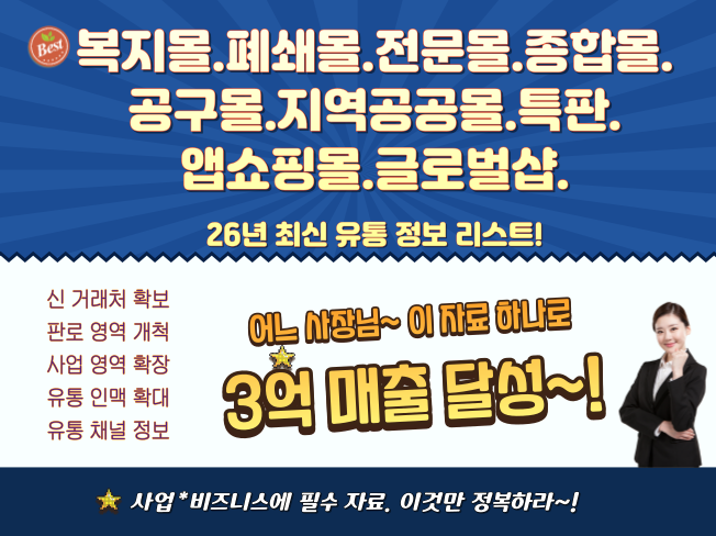유통 폭을 좀 더 넓히고 확장시키고 싶은 분들께 큰 도움이 될 수 있도록 전문몰 정보까지 추가하여