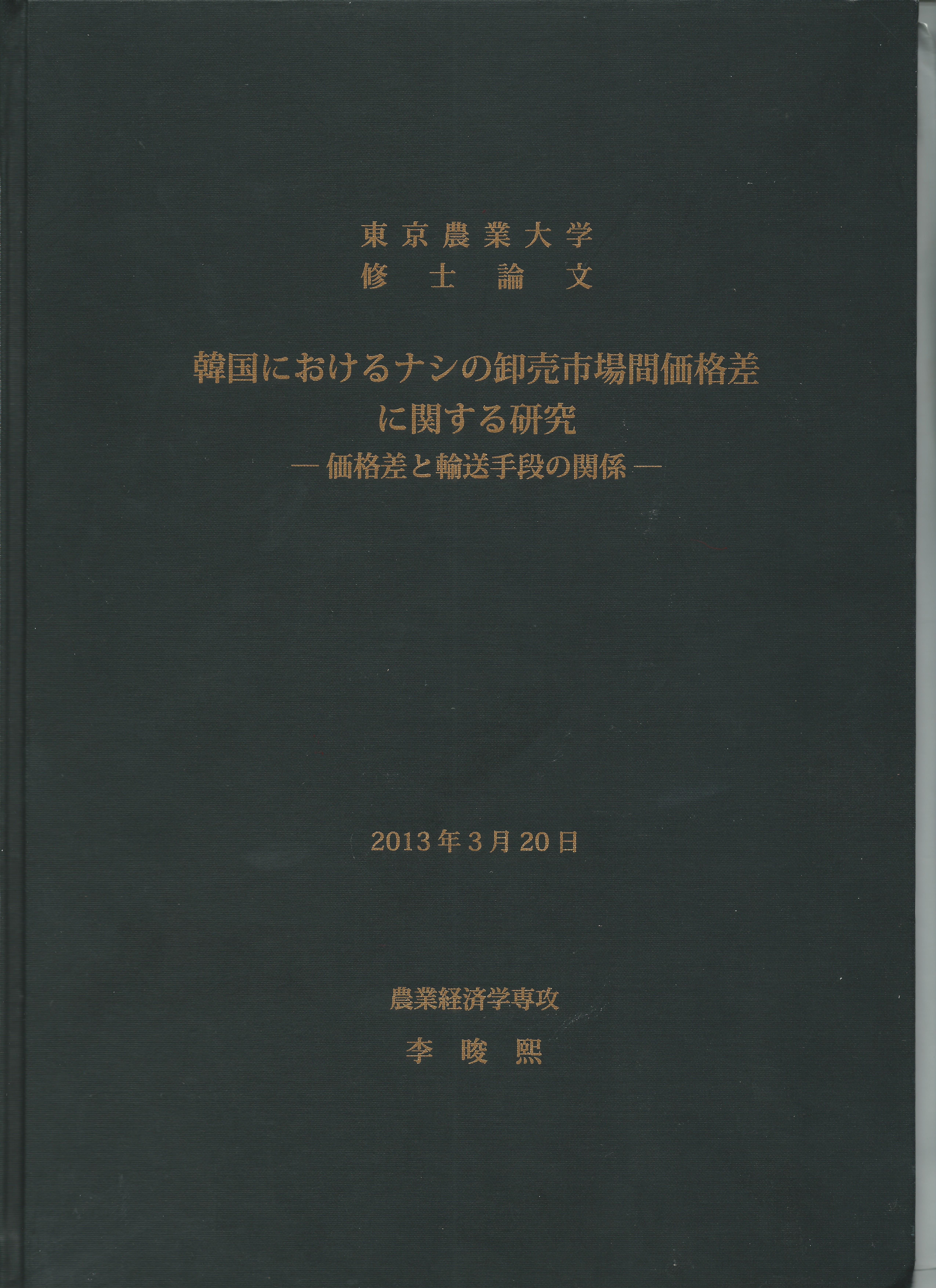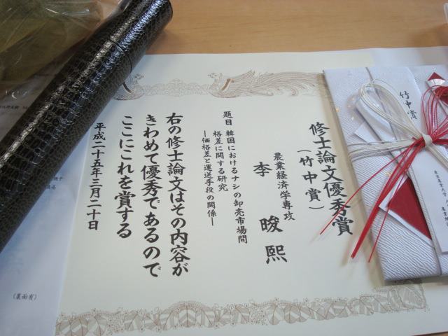 대학원은 일본의 도쿄농업대학교 대학원의 농업경제학과를 졸업하였습니다.