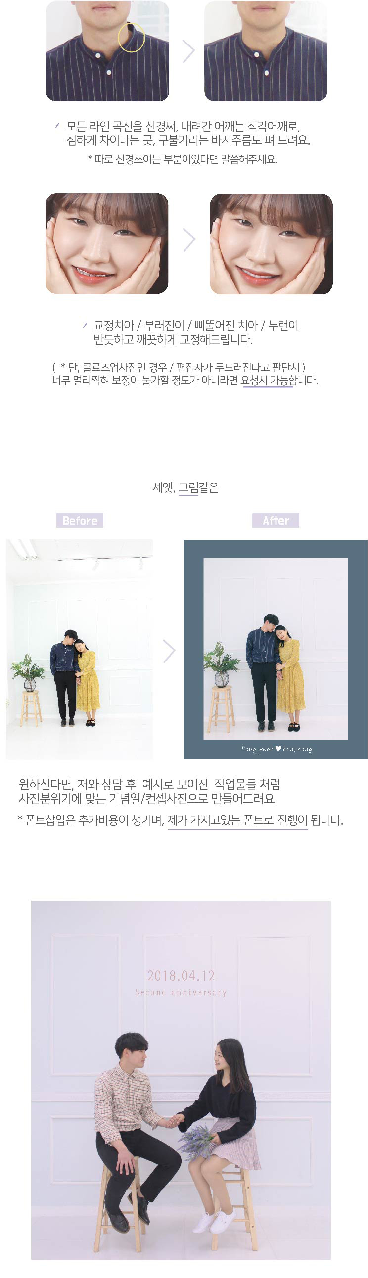 ※ 무리한 수정사항은 추가요금이 발생할 수 있으나, 작은 범위의 추가 수정사항들은 잘 해드립니다.