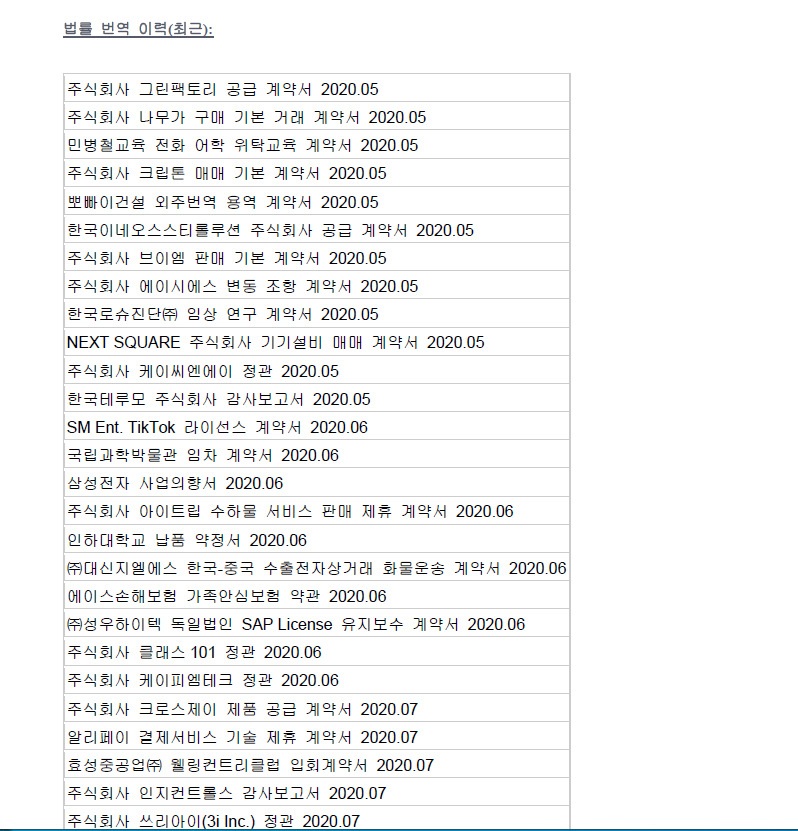 전문 수준 (번역 법률 및 의학) 관련 하여 견적 및 납기일이 변동될 수 있습니다. :)