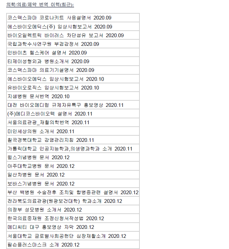 **의학/의료/제약 최근 번역 이력