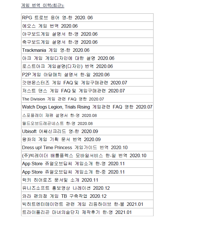 **게임 관련 최근 이력