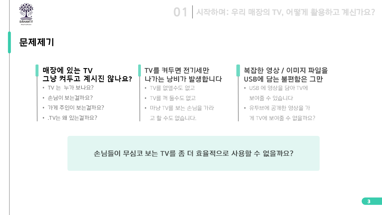 안녕하세요! 기존의 평범한 TV를 특별한 매장 광고판으로 바꿔줄 놀라운 솔루션을 소개해 드립니다.