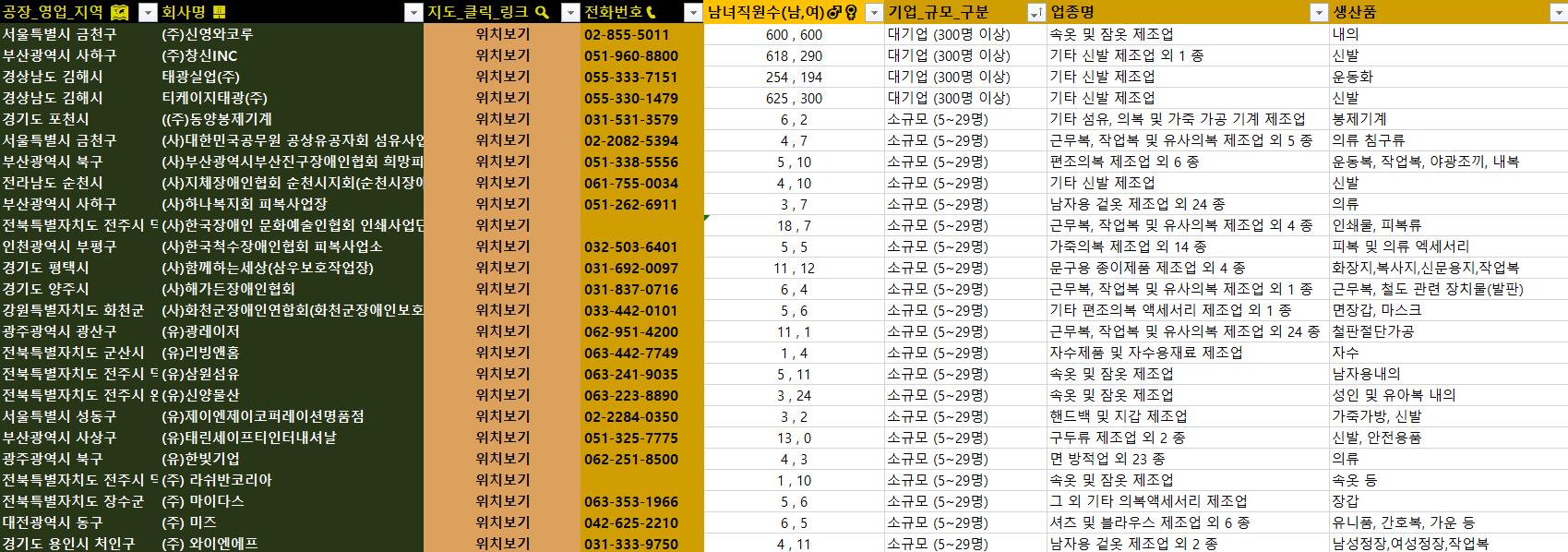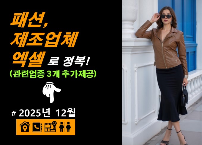 1. 초정밀 필터링! 수십만 건 데이터 속에서 추출한 패션 제조업체 리스트로, 잠재 고객을 정확히 찾아드립니다. 압도적인 효율성으로 시장 틈새를 공략하세요!