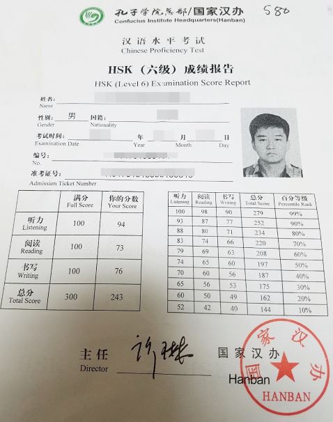 HSK 6급 자격증이 있습니다