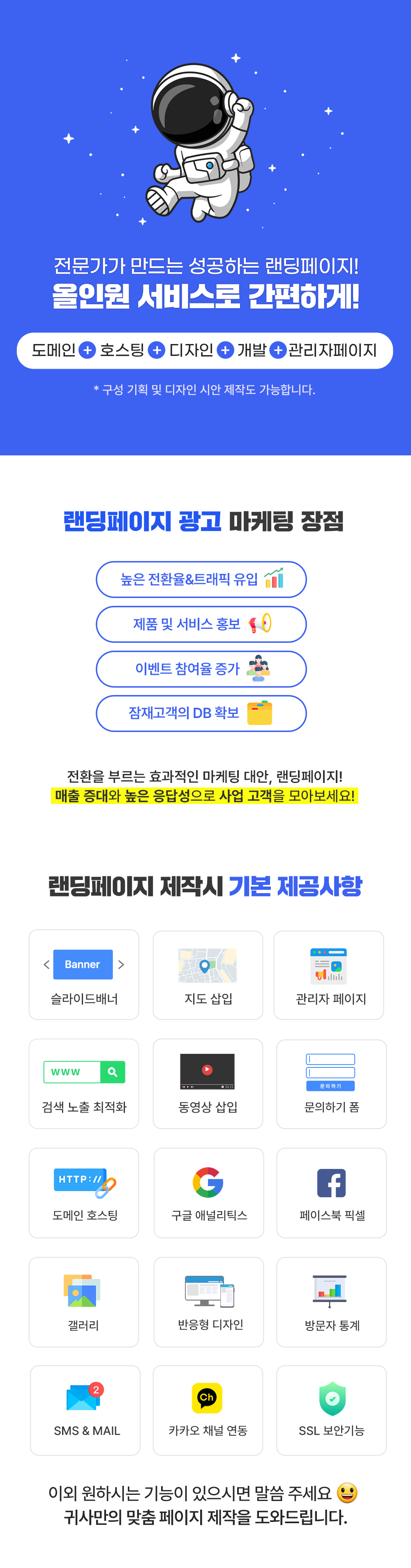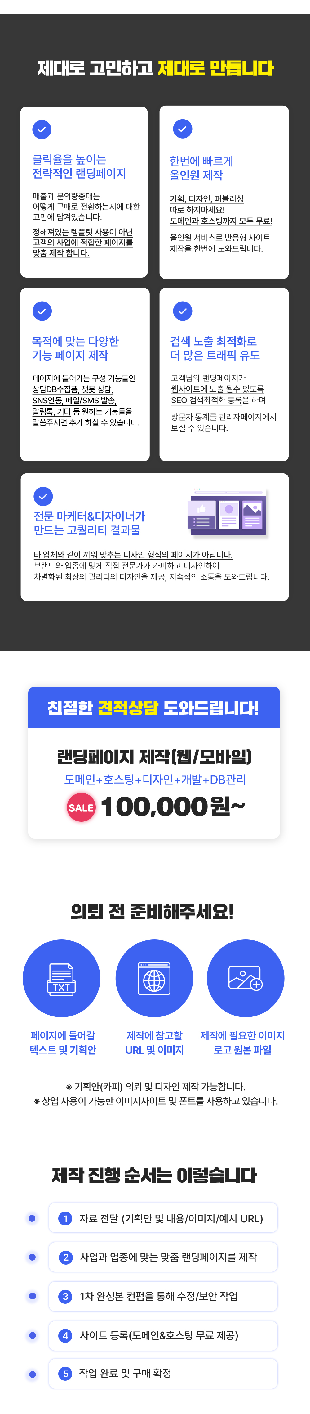 - 고객님의 사업과 업종에 맞는 맞춤 랜딩페이지를 제작합니다.