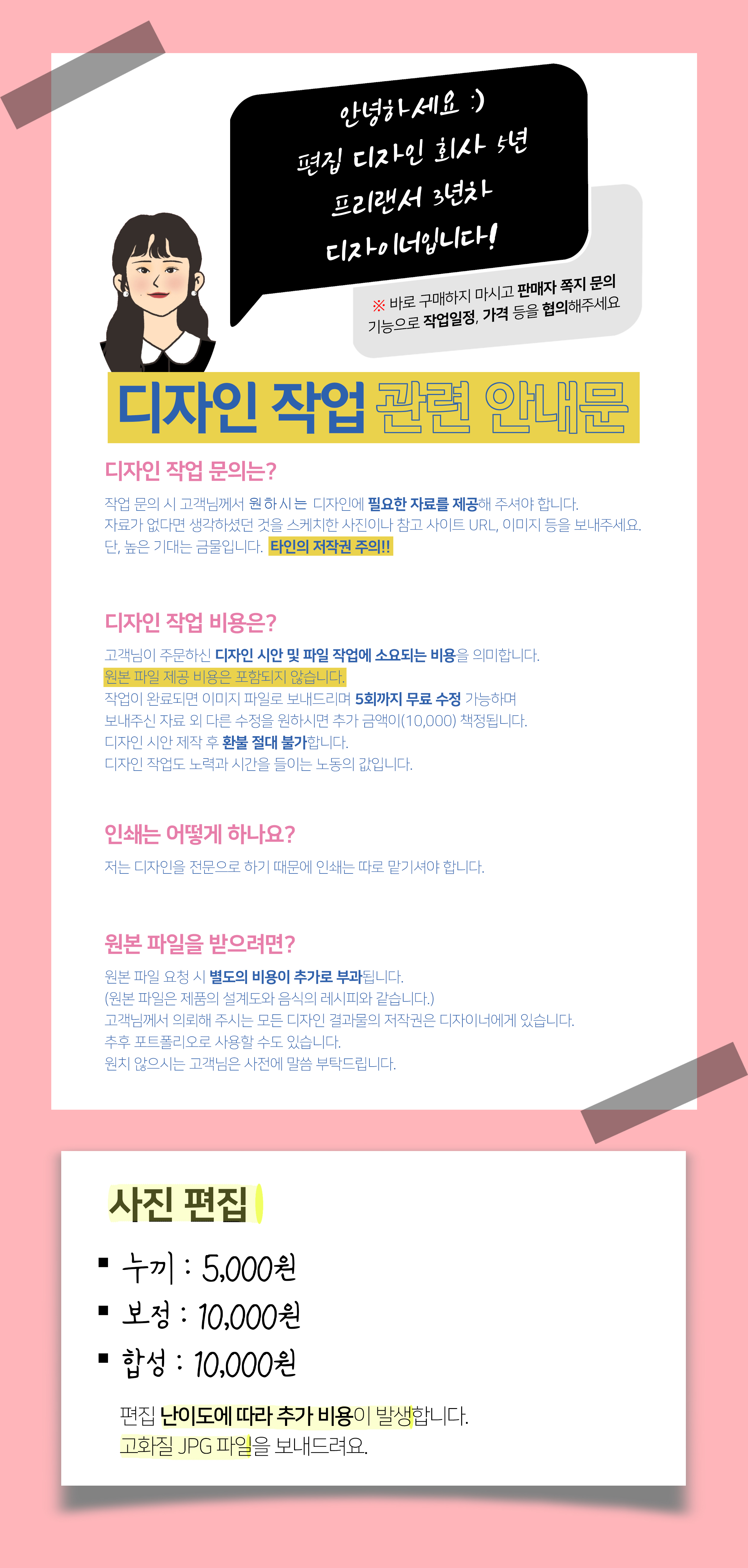 ** 바로 구매하지 마시고 "판매자 쪽지 문의" 기능으로 작업일정, 가격 등을 협의해주세요 **