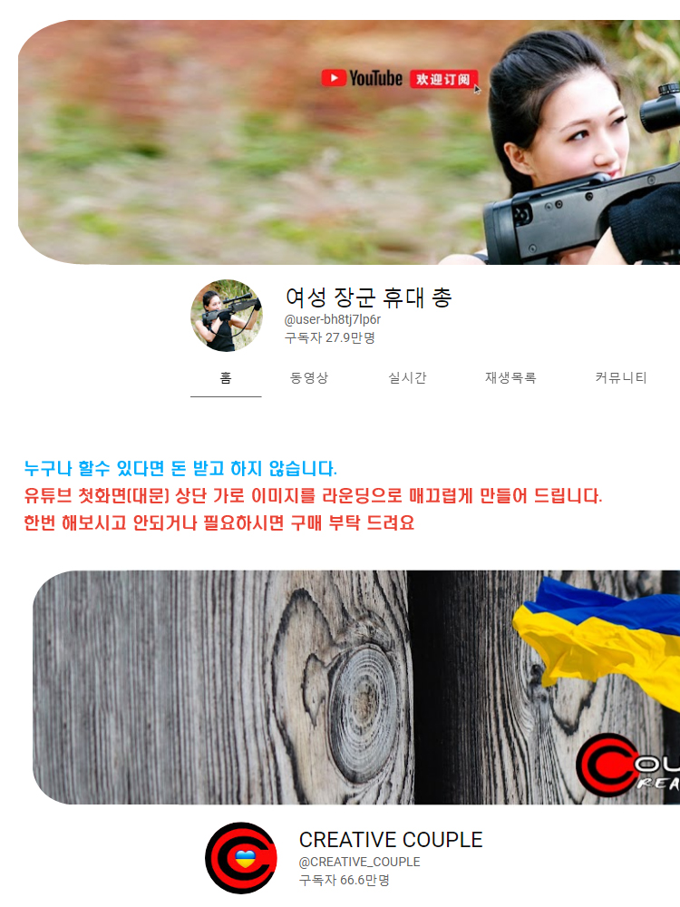 유튜브 첫화면(대문) 상단 가로 이미지를 라운딩으로 매끄럽게 만들어 드립니다