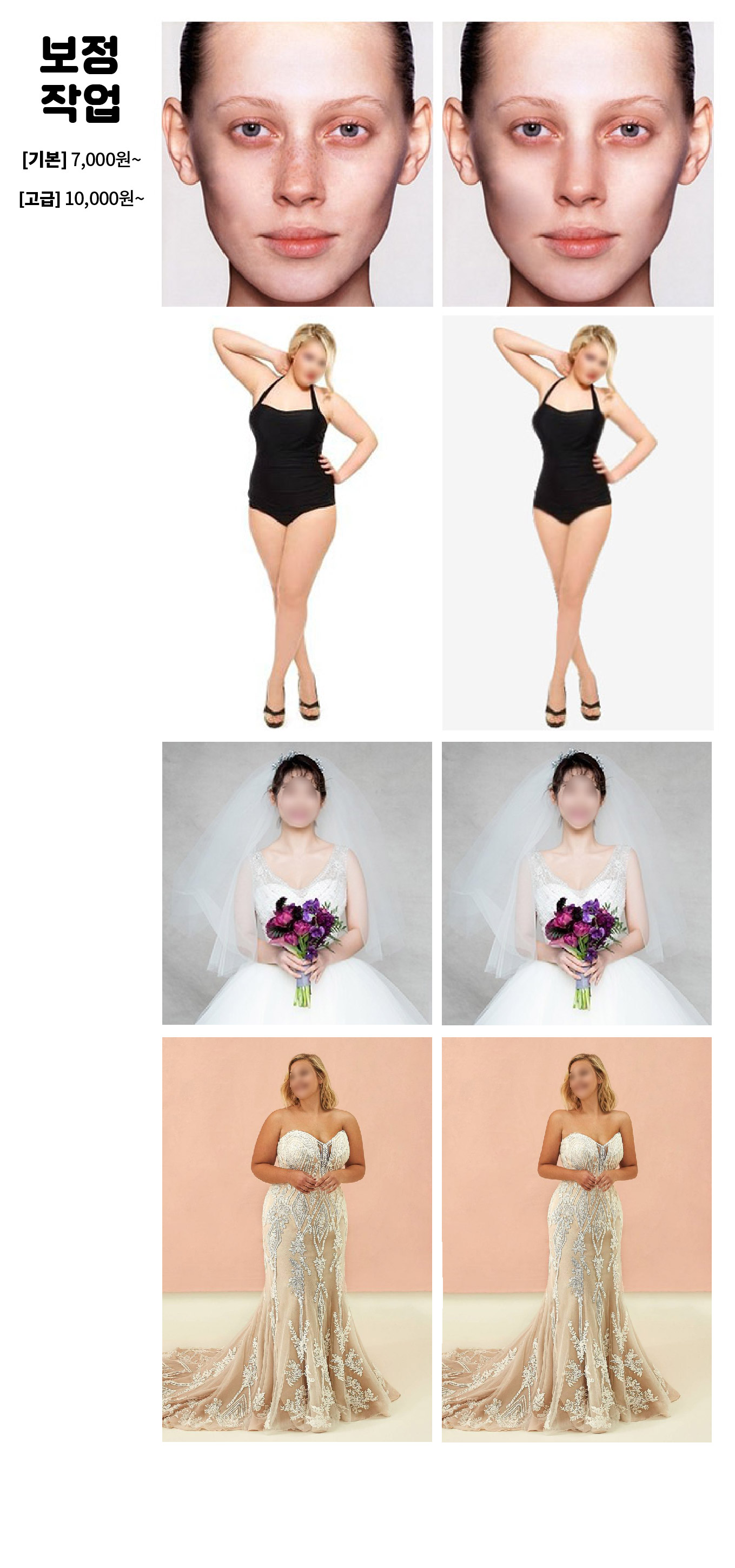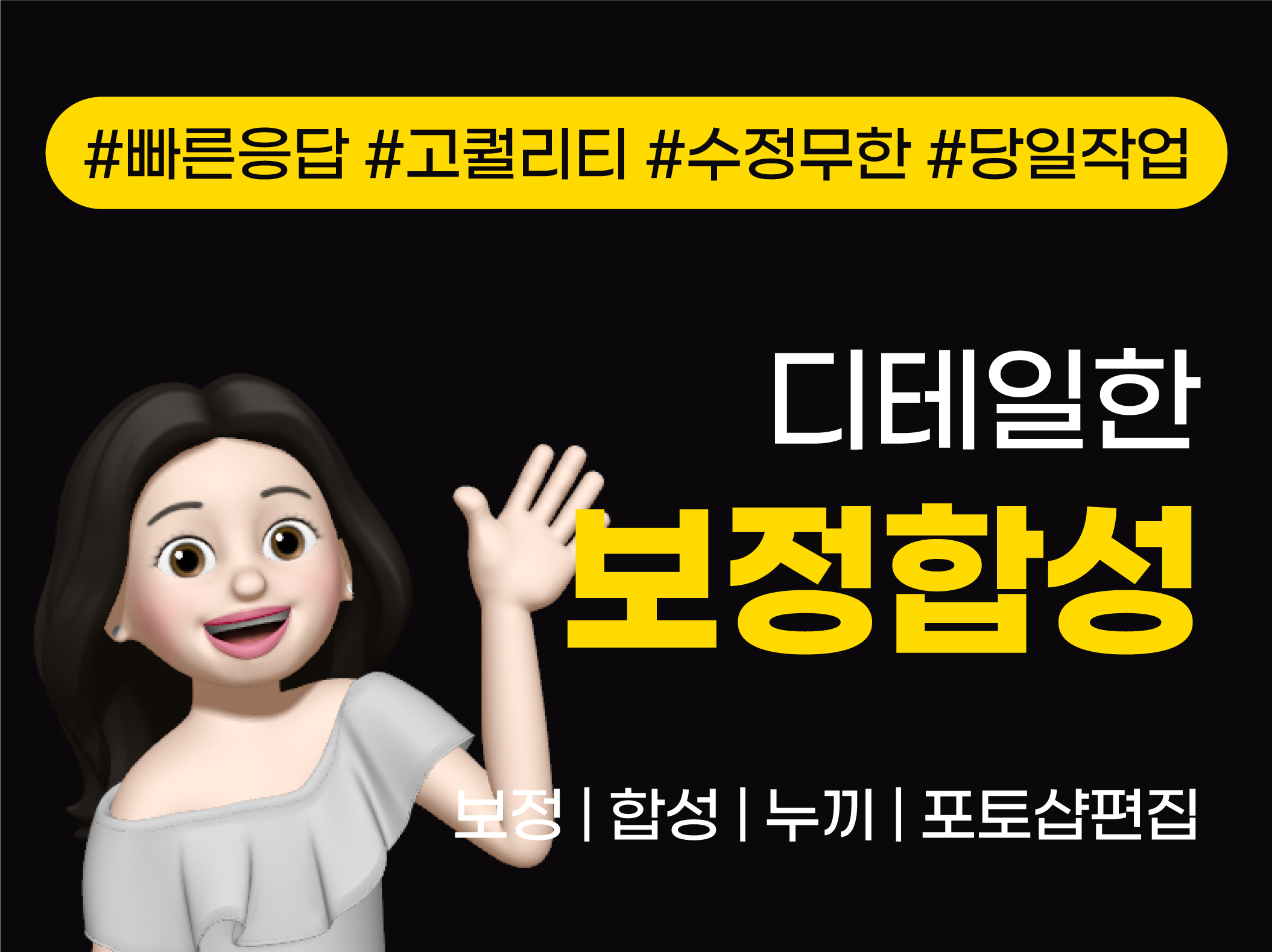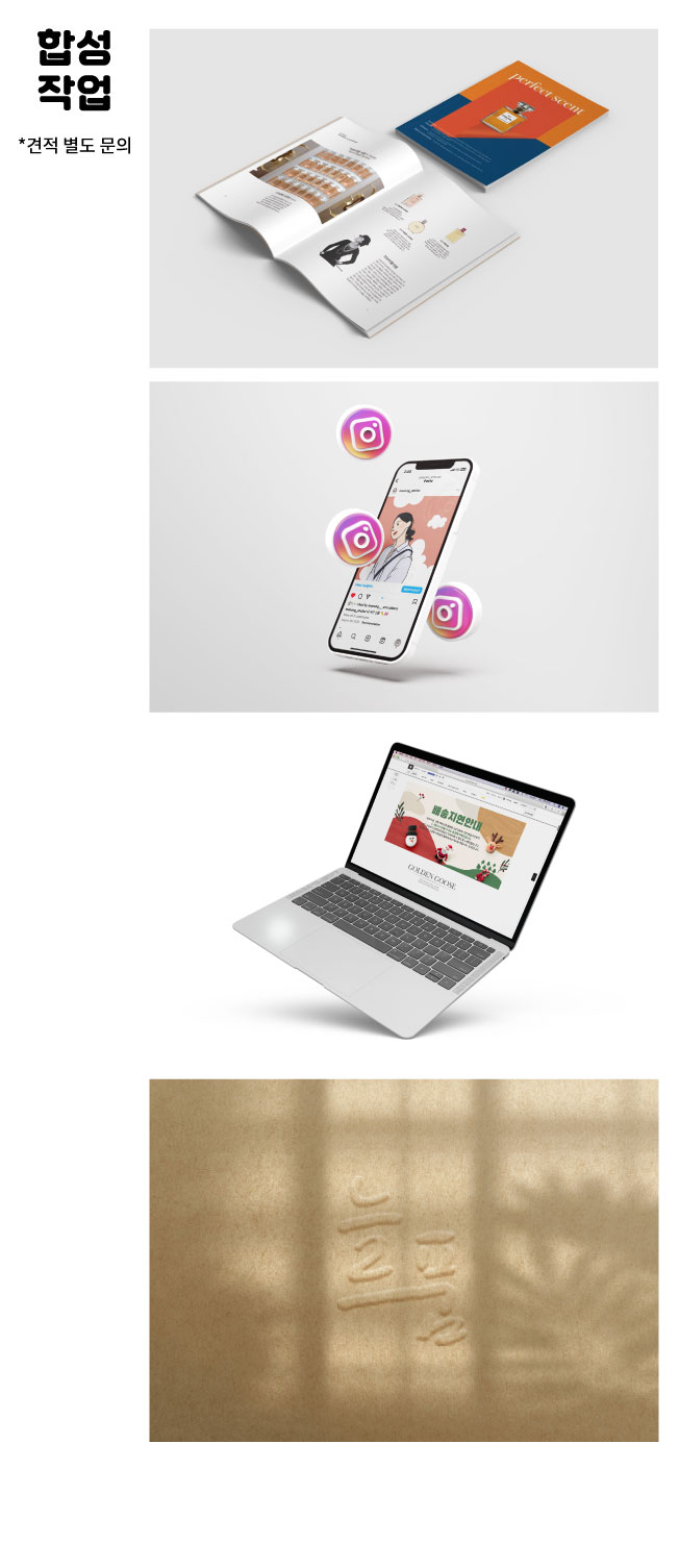 - 누끼, 이미지 보정, 합성, 리터칭의 작업 범위 안에서 모든 작업 가능합니다.