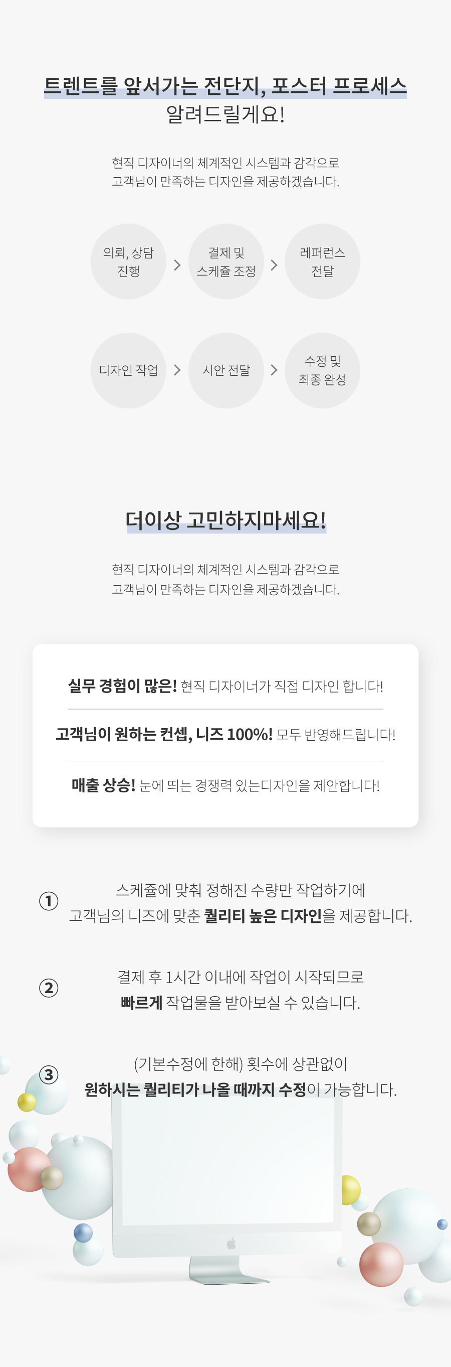 의도와 컨셉을 파악해 원하는 퀄리티의 작업물을 선사하기 위해 노력하겠습니다!