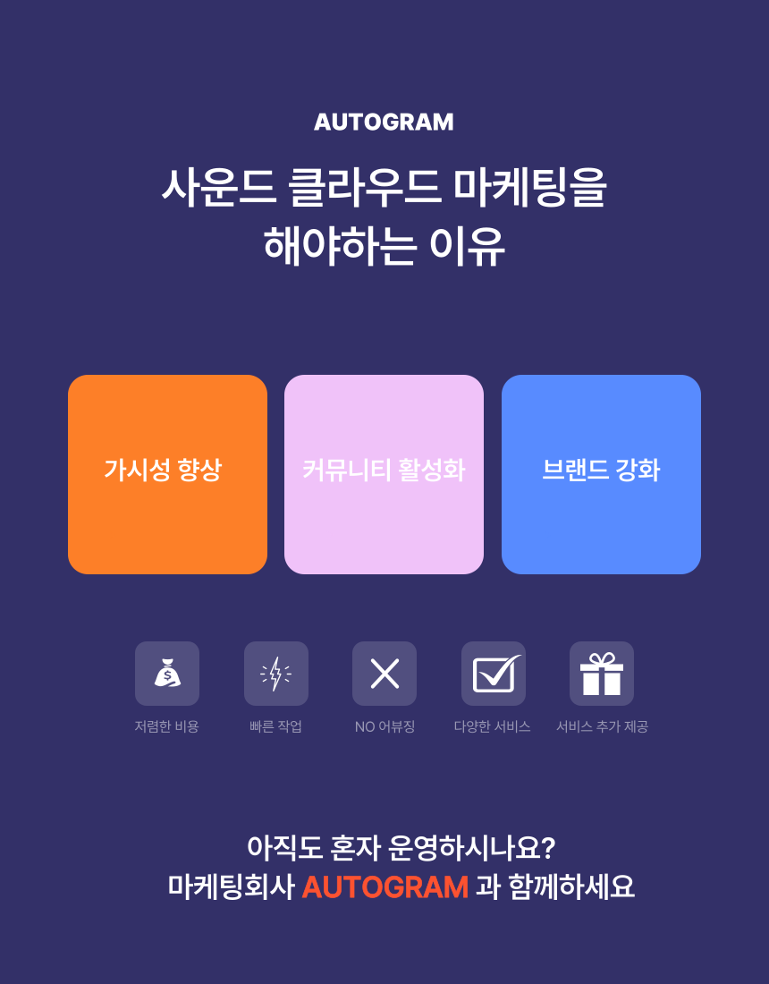 저, Autogram은 당신의 음악이 사운드 클라우드 내에서 빛날 수 있도록 최선을 다할 것입니다.