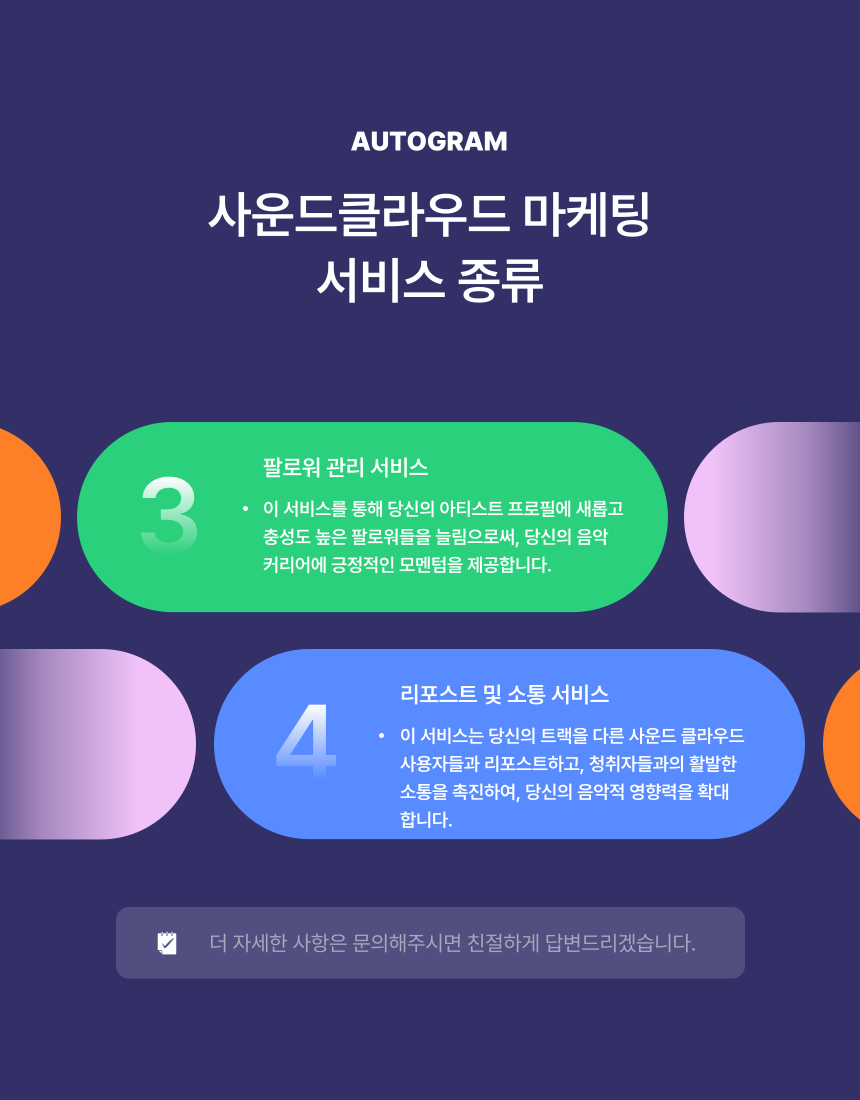 재생 횟수 증가, 팔로워 관리, 리포스트 및 소통 전략 등을 통해 당신의 음악적 성공을 위한 길을 개척합니다.