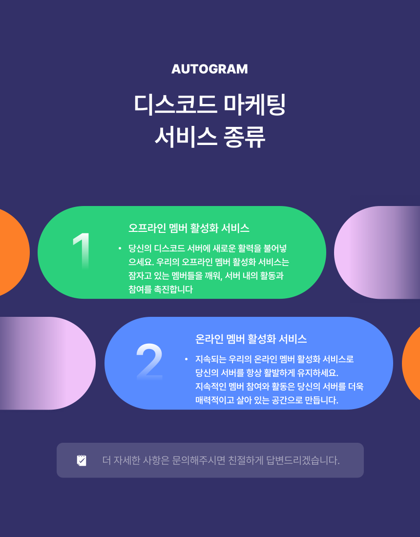 이 서비스는 서버의 활성도를 높이고, 신규 멤버들의 유입을 촉진하여 커뮤니티 성장을 가속화합니다.