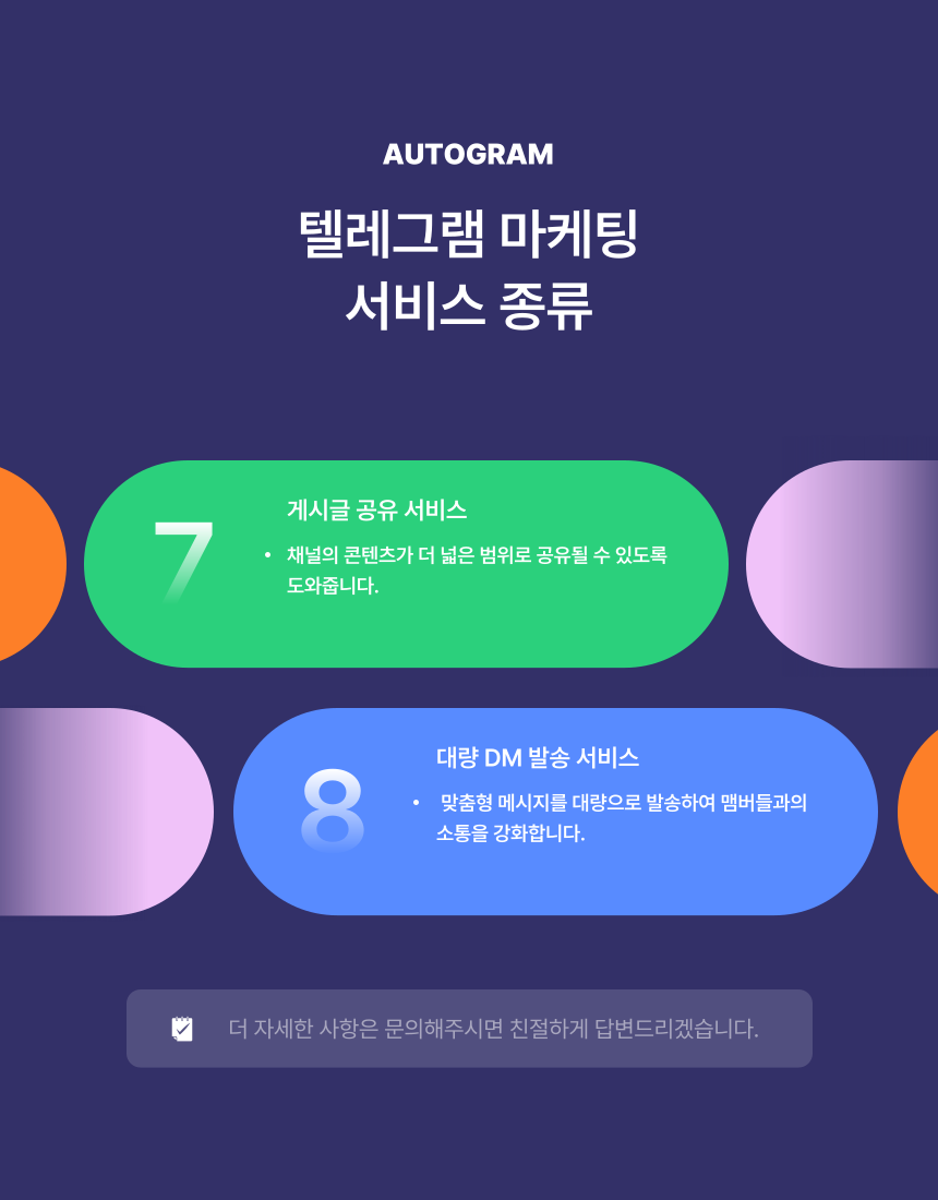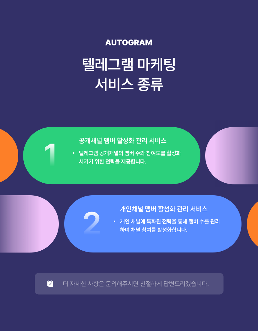 신뢰와 전문성을 바탕으로 한 Autogram의 서비스는 당신의 텔레그램 채널을 활성화시키고, 보다 더 넓은 대중과의 소통을 가능하게 합니다.