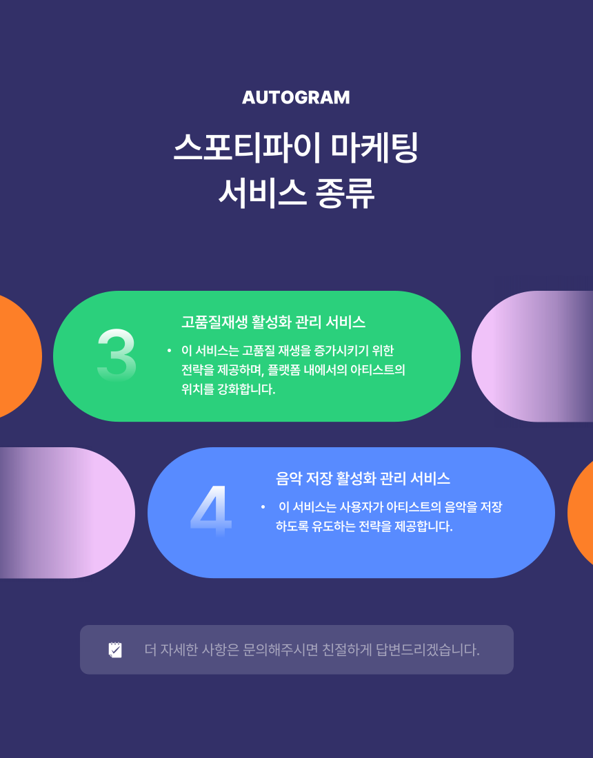 일반재생 활성화 관리 서비스: 이 서비스는 스포티파이에서의 재생 횟수를 활성화시키는 데 도움을 줍니다.