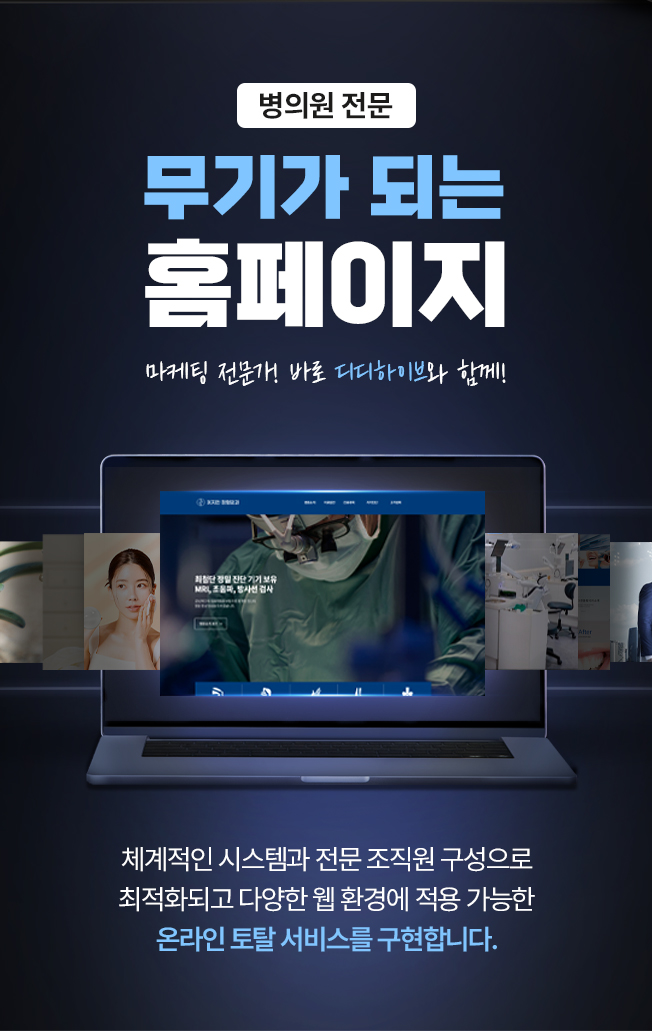 병원, 변호사, 스타트업, 회사 소개 홈페이지 등 다양한 분야에서 전문적으로 홈페이지를 디자인 개발하고 있으며
