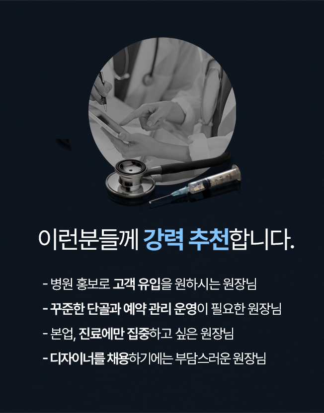 전문직부터 병원, 스타트업, 자영업, 기업소개 홈페이지 등 다양한 분야에서 사이트를 방문하는 사용자들이 가장 편리하고 자주 이용할 수 있도록