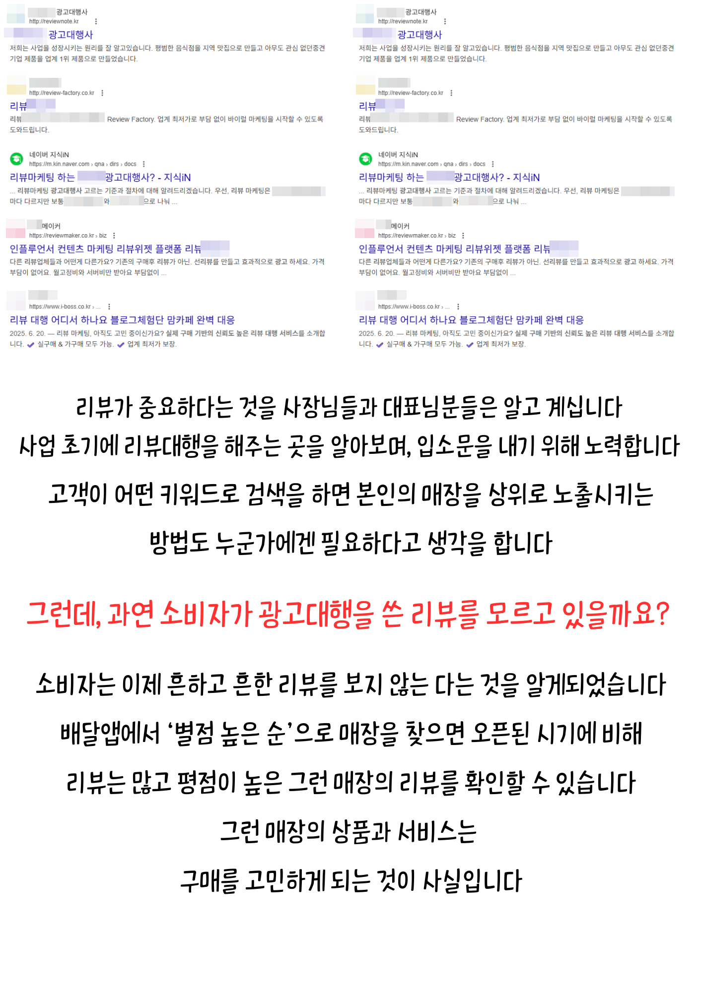 그런데, 과연 소비자가 광고대행을 쓴 리뷰를 모르고 있을까요?