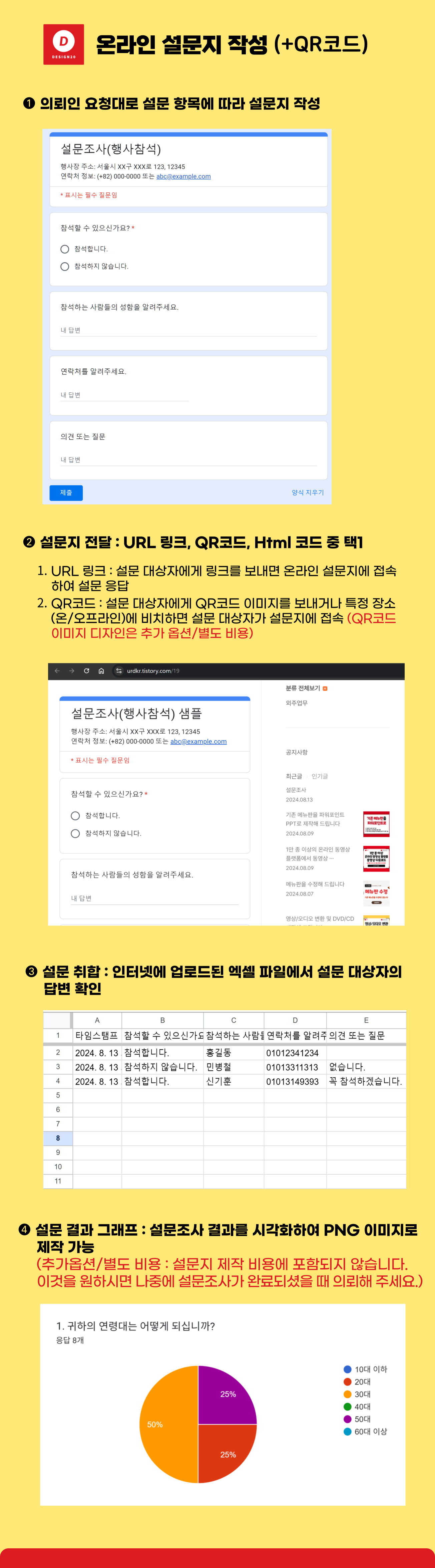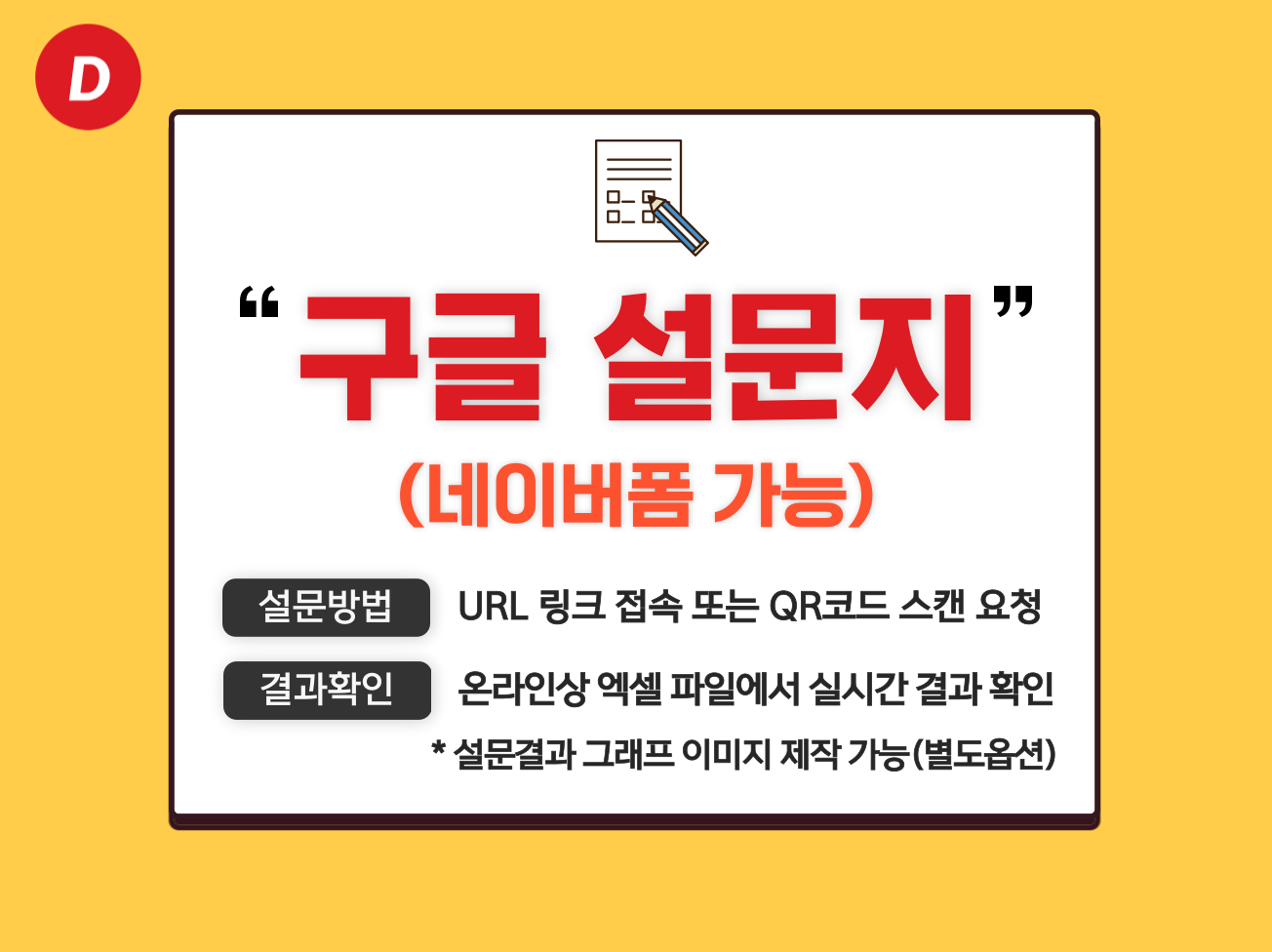 구글폼(구글 설문지) 또는 네이버폼 설문 제작 서비스를 제공합니다.