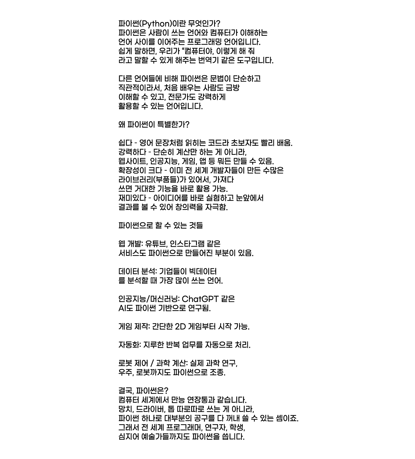 - 개발에 대해 잘 모르셔도 요청 사항을 말씀해주시면 기획/개발이 가능합니다.