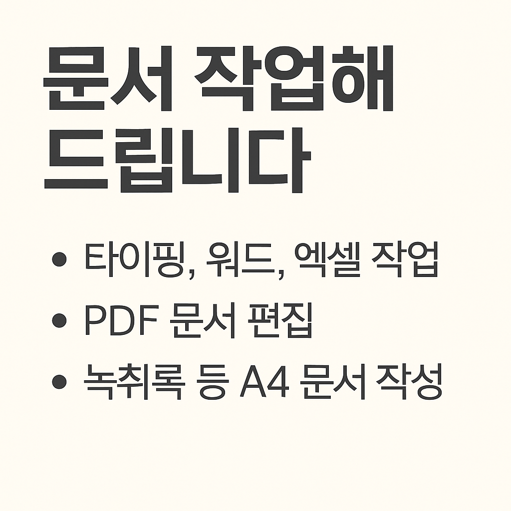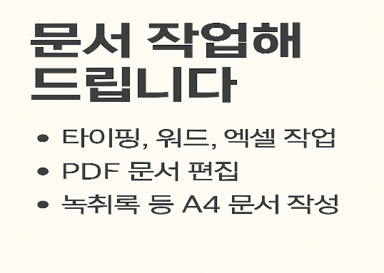 - 오탈자 없이 깔끔하게 입력하며, 검수 1회 포함됩니다.
