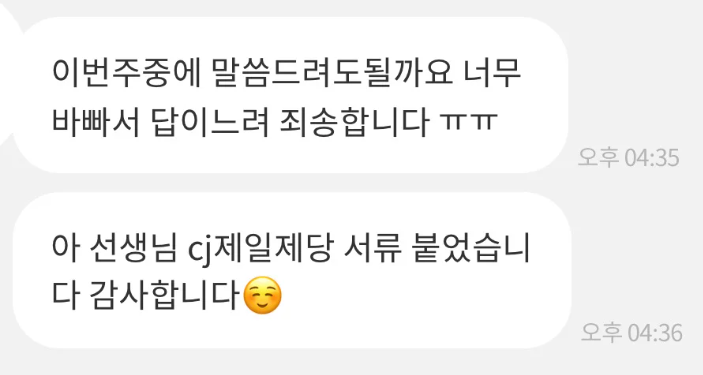 급하게 부탁드렸는데 너무 친절하게 대응 해주셔서 감사합니다! 덕분에 스트레스 좀 덜었네요ㅜ 다음에...