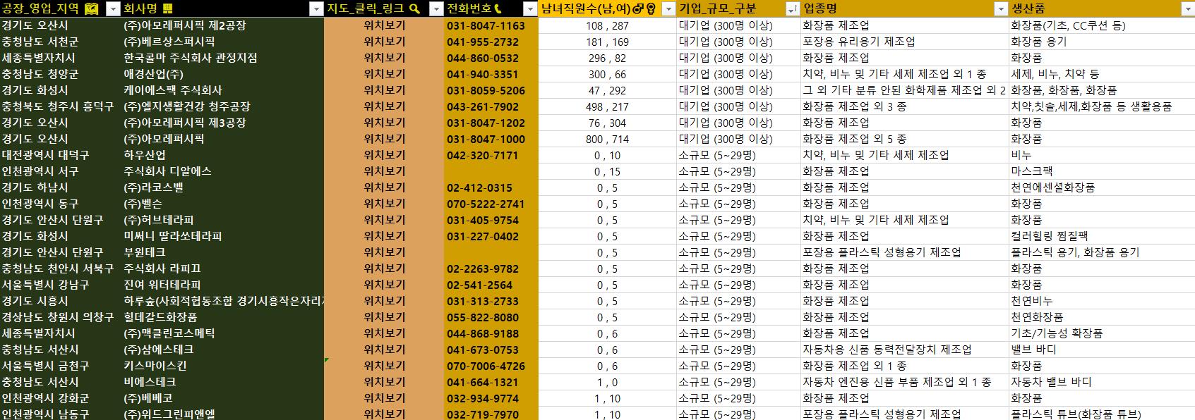 1. 초정밀 필터링! 수십만 건 데이터 속에서 추출한 화장품 제조업체 리스트로,