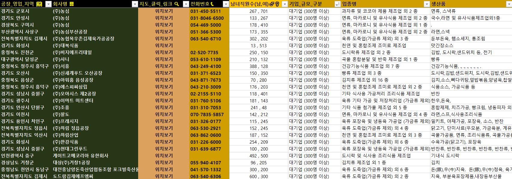 1. 초정밀 필터링! 수십만 건 데이터 속에서 추출한 식품 제조업체 리스트(밀키트 포함)로,