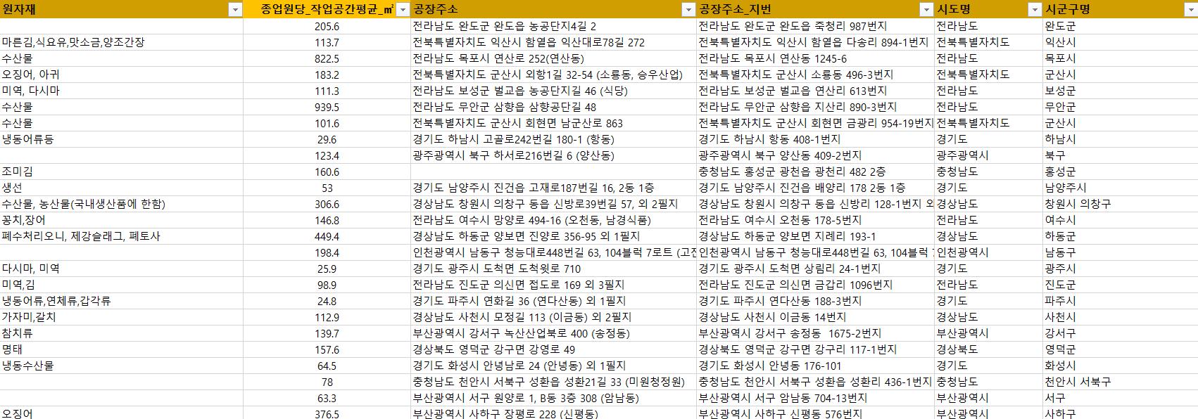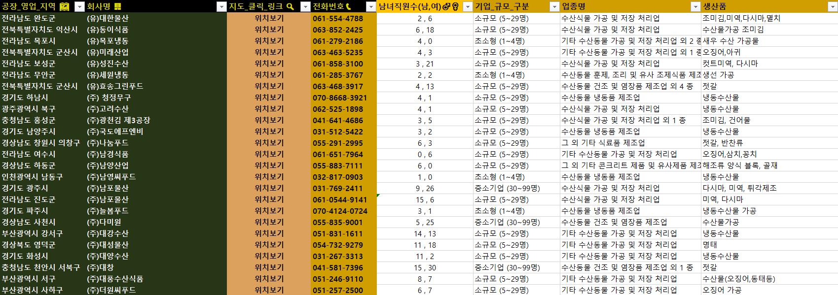 1. 초정밀 필터링! 수십만 건 데이터 속에서 추출한 수산물 제조업체 리스트로,