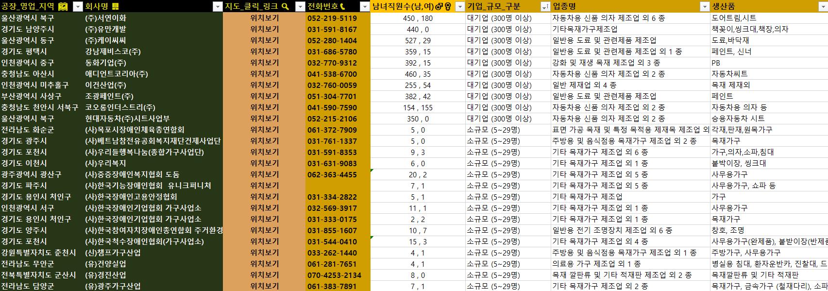 1. 초정밀 필터링! 수십만 건 데이터 속에서 추출한 가구/목재/인테리어 제조업체 리스트로,