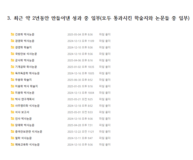 몇몇 의뢰인분들이 제가 박사학위가 없어 좀 불안해 하시는데, 지금껏 너무 많은 박사논문들을 통과시켜 오고 있기 때문에,