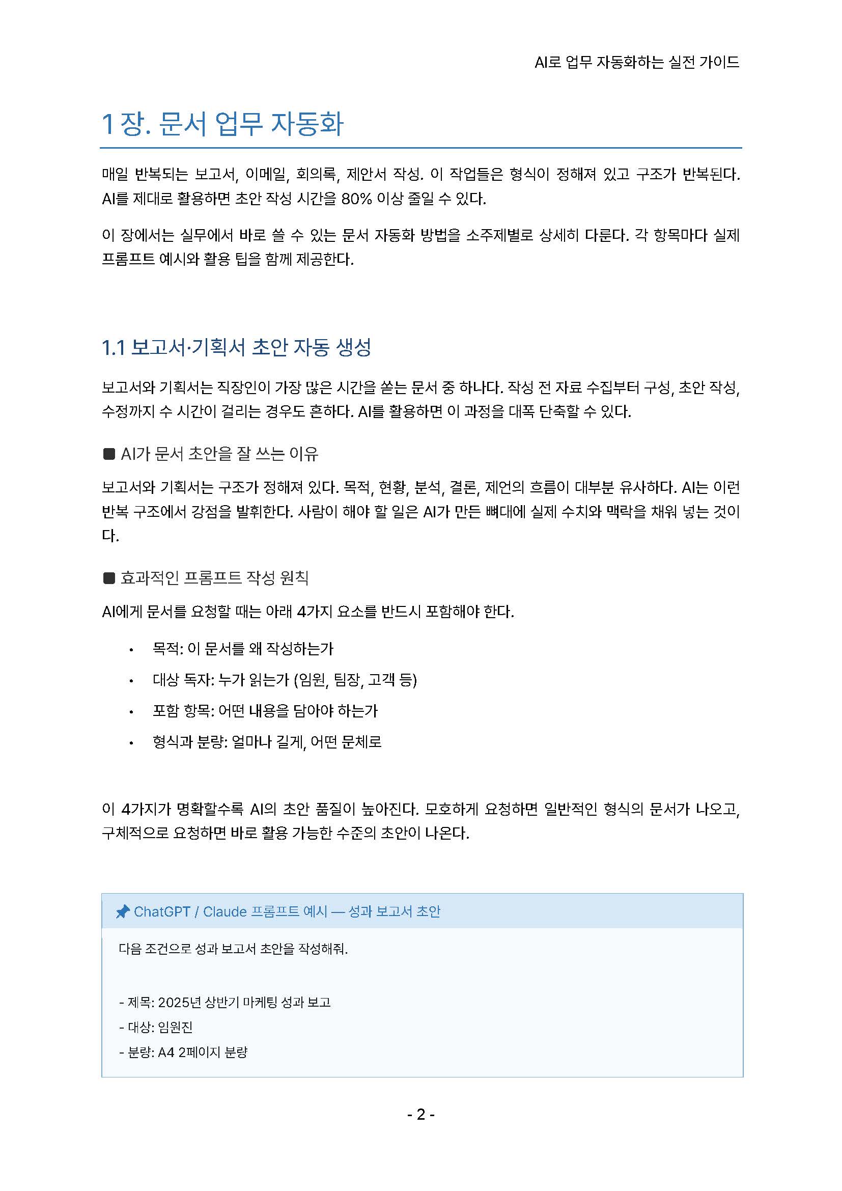1) [문서업무] 보고서, 기획서, 이메일, 공문, 회의록, 제안서, PPT 작성 자동화