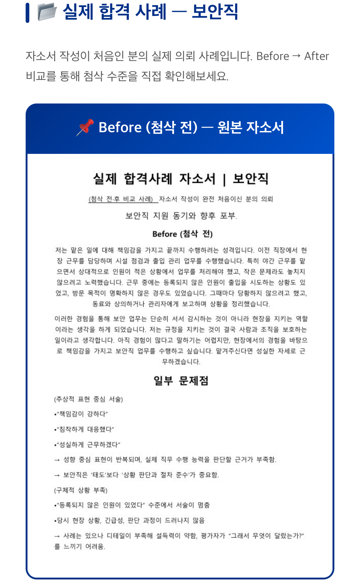 필요 시 어떤 부분을 왜 보완했는지도 이해하기 쉽도록 함께 안내드립니다.